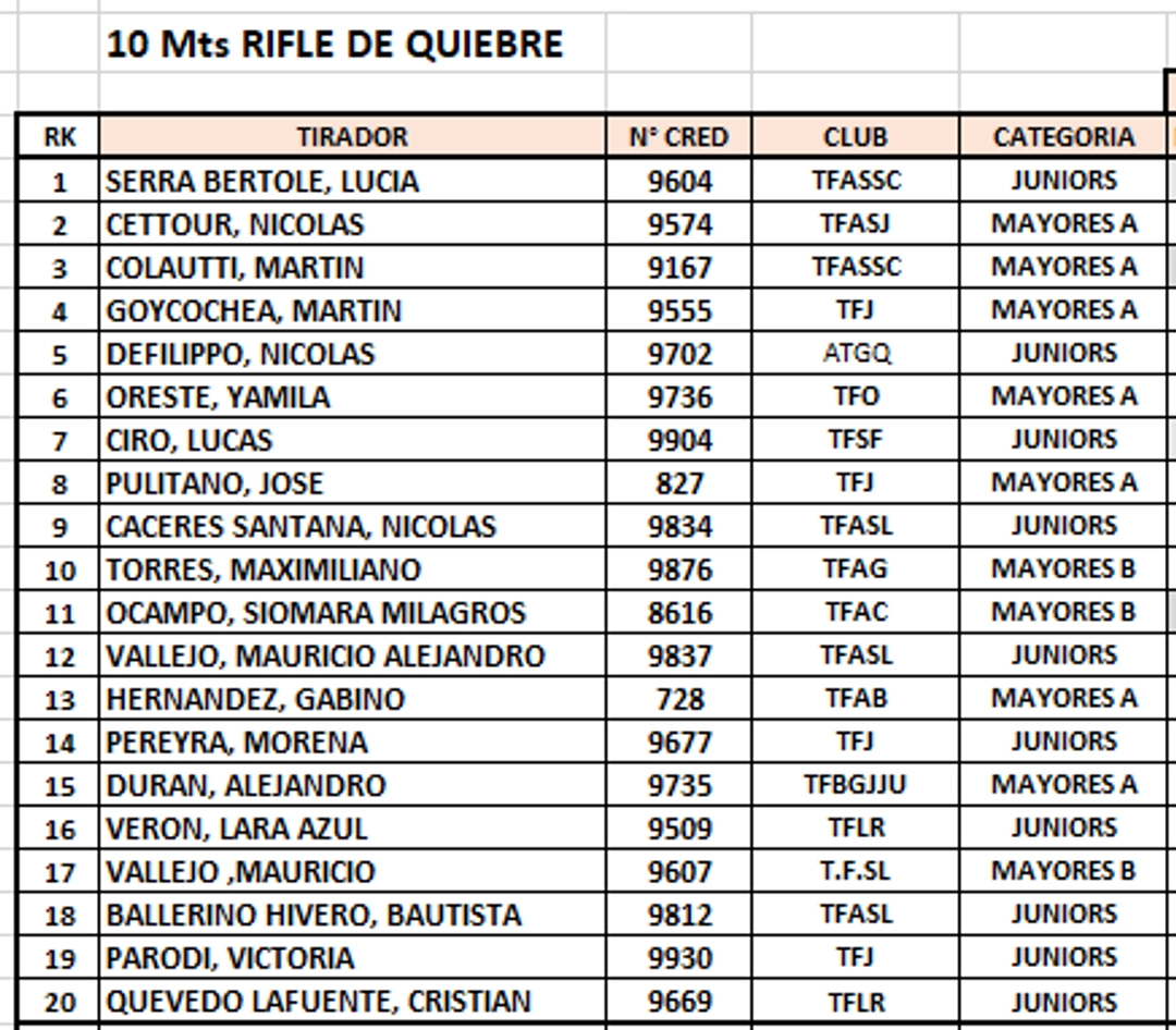 Es fundamental cumplir con este requisito en tiempo y forma, ya que, una vez vencido el plazo, se procederá a convocar a los tiradores ubicados a partir del puesto 21 del ranking nacional, siguiendo el orden de mérito.